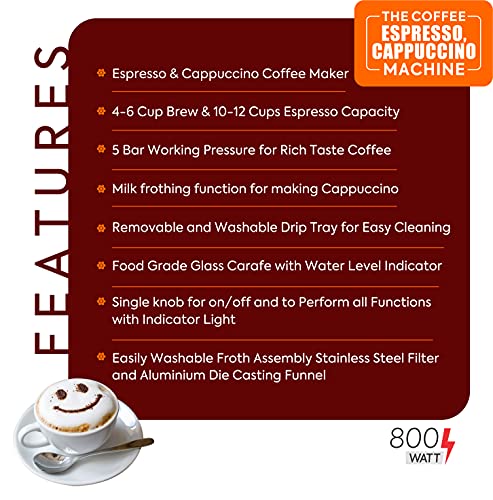 KHAITAN AVAANTE KA-801 (800 Watt) The Coffee Espresso, Cappuccino Machine- Red & Silver