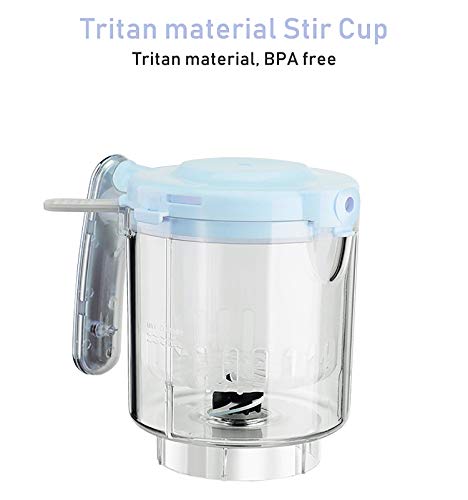 HIGH SAFETY STANDARDS : All parts of this food processor in touch with baby food are made of food grade material. The STIR CUP is made of TRITAN MATERIAL which is BPA, Phthalate and Lead free. It also has a DOUBLE SAFETY SWITCH which prevents food processor from operating when the stirring cup or its cover are not in place.