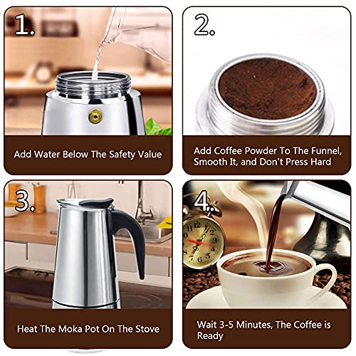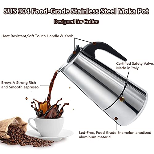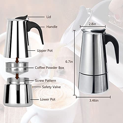 Kindream Stovetop Espresso Maker,Stainless Steel Moka Pot,Italian Coffee Maker Stove top Espresso Shot Maker for Espresso Coffee Percolator Machine 4Cup/200ml/6.76ounce