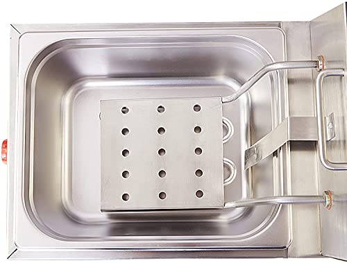 Package Content: * 1x Single Tank Stainless Steel Deep Fryer * 1x Stainless Steel Basket * 1x Stainless Steel Lid Cover * 1x Stainless Steel Residue Plate * Food shown in the pictures not includedL Steel Body