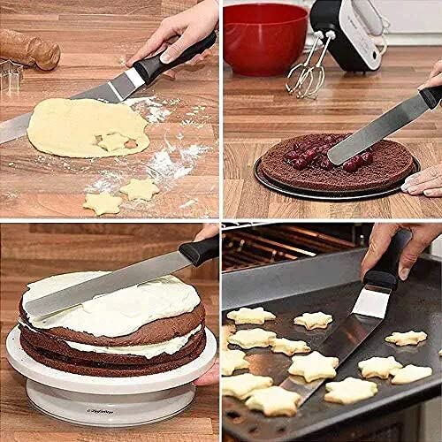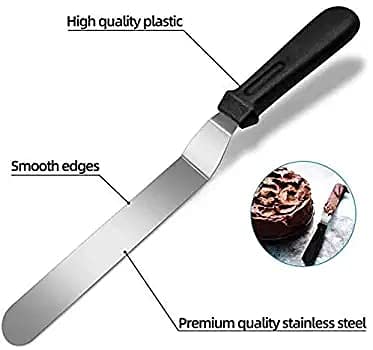 Palette knives makes your frosting process much more easier and efficient. It is very ideal for spreading cream with rotating spin. Particle handle provides better control even if your hands were covered with cream. Perfect for spreading icing, cream and butter icing in cakes. With a cranked tempered stainless steel paddle at the perfect angle and the angle feels just right. This spatula helps you to achieve a much smoother surface. Easy to handle ergonomic handle designed to be more comfortable in your hand, making it easier to use and grip when you’re icing treats and cakes. Enjoy the pleasure of cake decorating It is perfect for icing desserts, frosting pastry, cookies, crepes, pies and cupcakes, picking up and carrying cakes or pizzas, sandwiches, even cutting curds.