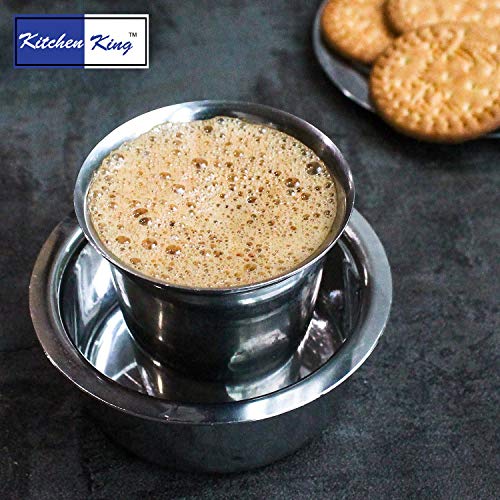 Kitchen King Coffee Steel Davara With Tumbler | Set of 2, Size 2-150 ml/Glass Stainless Steel (2)Kappi Dabara set|Coffee Davara set Pure Steel Heavy Gauge Dabara set||Tea Davara set For Home With Smooth Edge.s