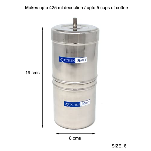 Kitchen Mart Stainless Steel South Indian Filter Coffee Drip maker: You can now have delectable filter coffee right at your home with your loved ones. You can use this coffee filter to make filter coffee the south-Indian style. It has a fine mesh for filtering the coffee decoction. It is made of stainless steel and thus, is hardy and durable. Also, it is very easy to clean and use.