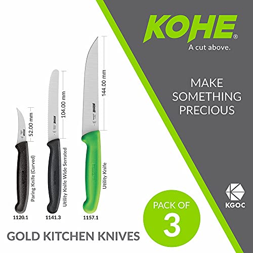 Be the first to review “KOHE Kitchen Knife Set – 1 Paring Curved Knife – 1 Utility Wide Serrated Knife – 1 Utility Knife for Home & Commercial Use”