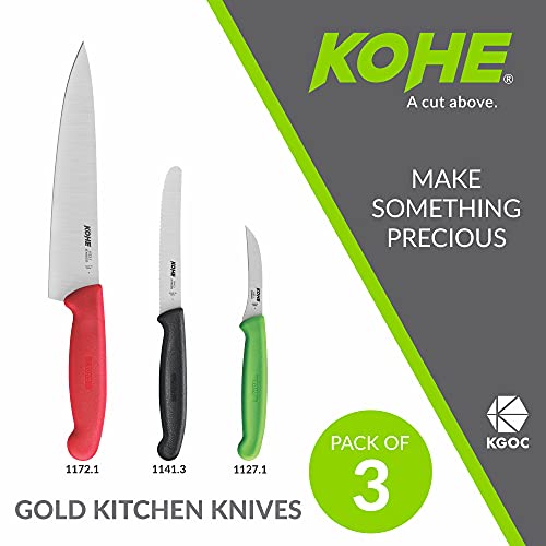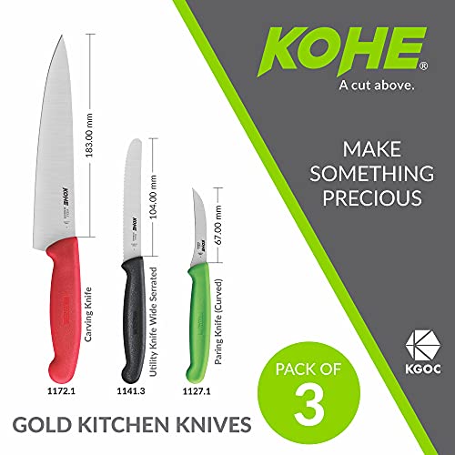 Included Components ‏ : ‎ 1 Kohe Carving Knife 1172.1, 1 Kohe Utility Knife wide Serrated 1141.3, 1 Kohe Paring Knife Curved 1127.1