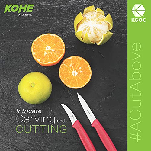CONICALLY GROUND: The knife is conically ground on full length and crosswise blade for easy and effortless cutting/slicing. Also the knife comes in 3 color handle – Red,Green,Black.