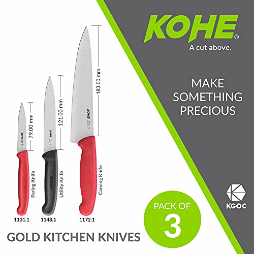 Be the first to review “KOHE Stainless Steel Straight Edge Knife Set of 1 Utility Knife Wide Serrated Edge, 1 Carving Knife, 1 Curved Paring Knife (Pack of 3)”