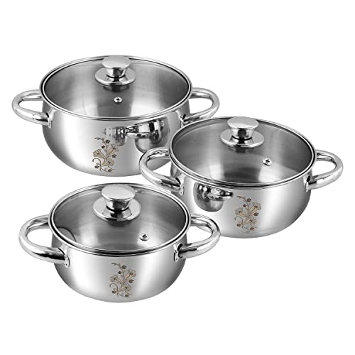 This set comes with a 3 piece casserole set with handles and glass lid which can be used for cooking as well as serving on your dinner table