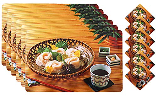 Kuber Industries Basket Design PVC Dining Table Placemat Set with Tea Coasters (CTKTC032193, Brown) – 6 Pieces