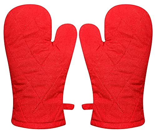 Two pack oven mitts Which Is Best For Handling Heat or Cold. Heat Resistant Pad Provides Effective Insulations. Fit for Daily Usage: House Kitchen, Cooking Schools, Restaurant, Catering Business, Hotel, Food Handling or Production Kitchen, Banquet, Catering Business, Etc. These cotton oven mitts allow you to handle cookware safely. Comfort Premium gloves are made of pure cotton fabric and quilt which makes the oven mitts soft and they’re cushioned for added comfort. A perfect fit for him or her, these oven mitts size to fit everyone. Keep them within easy reach with the loops on the bottoms of the gloves which allow them to be hung on a hook in between uses.