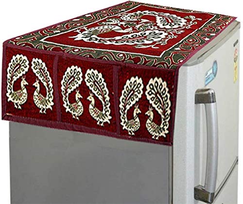Kuber Industries Floral Design PVC 4 Seater Center Table Cover – Purple & Cloth 3 Pieces Fridge Mat, 1 Piece Handle Cover and 1 Pieces Fridge Top Cover (Red)-CTKTC2786 Combo