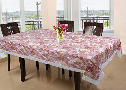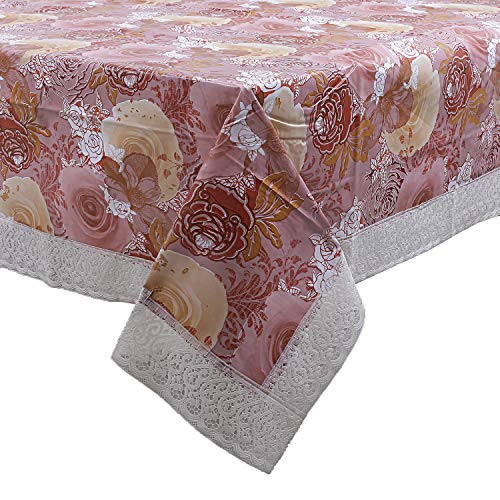 Kuber Industries Flower Design PVC 6 Seater Dining Table Cover – Brown & Brocade Silk Jewellery Kit, Red (CTKTC588) Combo