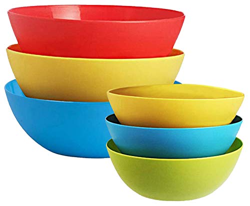 Kuber Industries Plastic Mixing Bowl – 500ml, 1000 ml, 6 Pieces (Multicolor)