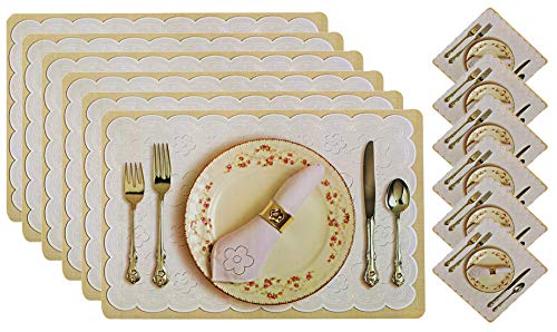 Package Contents: 6 Pieces Dining Table Placemat Set with 6 Pieces Tea Coasters