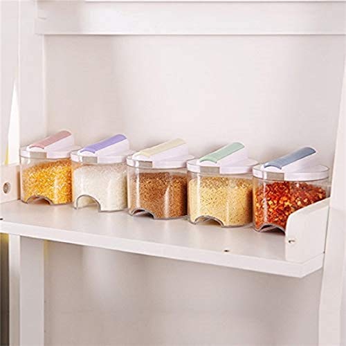 Easy to remove and clean. Can be used to hold a variety of condiments:pepper, sugar, salt, spice, chicken broth powder, corn starch and more.Modeling unique novel, crystal clear,can easily distinguish variety of condiments in the seasoning box, Long-term use will not change color