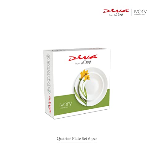 La Opala Diva, Ivory Collection, Opal Glass Quarter Plate Set 6 pcs, Golden Fall, White
