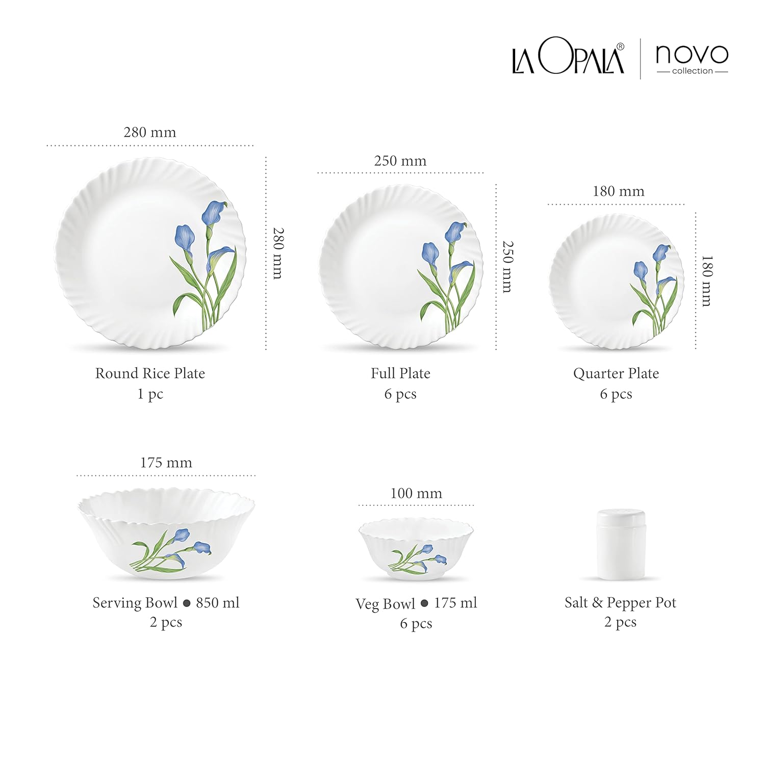 Be the first to review “La Opala Novo Collection Opal Glass Crockery | for Family of 6 | Dinner Set 23 pcs Tender Trio | Plates & Bowls for Dining | Microwave Safe | 100% Vegetarian | Extra Strong | Light & White”
