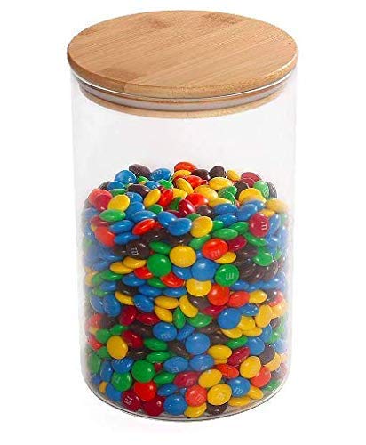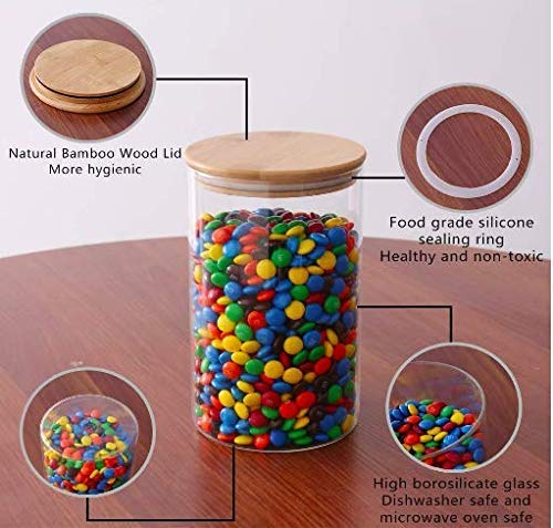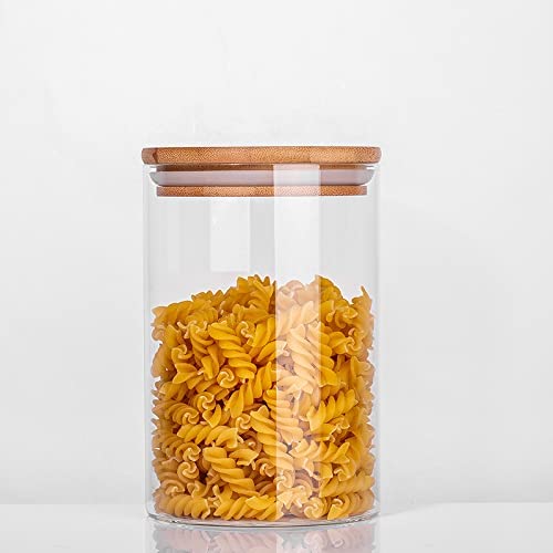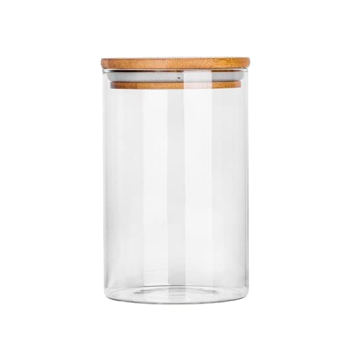 La Spezia pack Of 6 Glass Containers With Lid, Glass Storage Containers With Wooden Airtight Lid, Borosilicate, Cookie Jar, Spice Jar, Kitchen Glass Jar With Lid (1050, Round, 6, Bamboo jar)