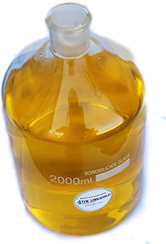 Labworld Glass reagent bottle 2 litres for lab borosilicate glassware narrow mouth with stopper chemical bottles for laboratory,kitchen and professional use,1 piece