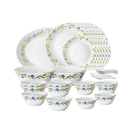 Larah by Borosil Cripper Opalware Dinner Set, 33-Pieces, White