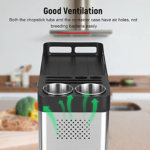 Drainage Design & Air Holes.With water tanks to collect excess water,the rack makes it easy and quick to dry the knives,dishes or spoons.Both the chopstick tube and the container case have air holes, which will not breed bacteria easily.