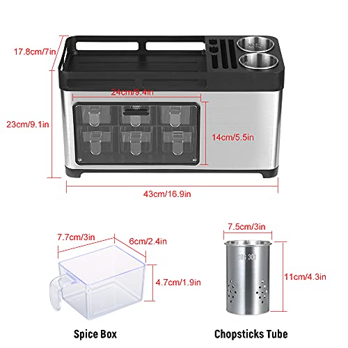 Large Capacity.This kitchen holder provides large capacity for storage,which is big enough to hold spice bottles,seasoning jars,chopsticks,knives,spoons,forks,fruit peelers and so on.Keep everything in order to make the kitchen cleaner and more room