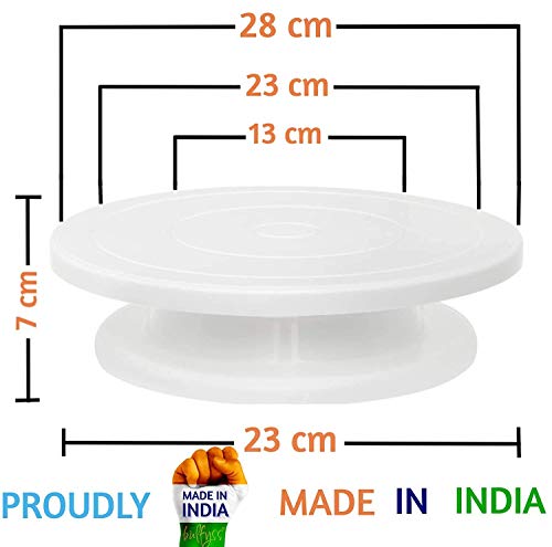 Clear Scale Lines: 3 scale lines (5.5 inch, 9 inch, 11 inch) on the surface of cake stand. Helps you make the cake in different size easily and precisely.