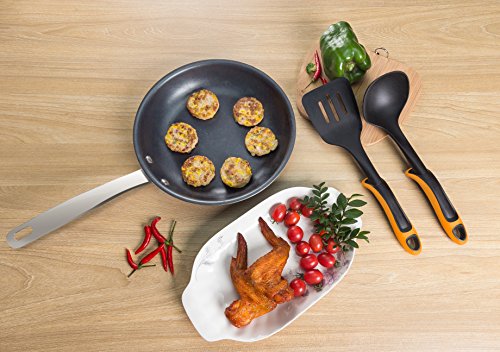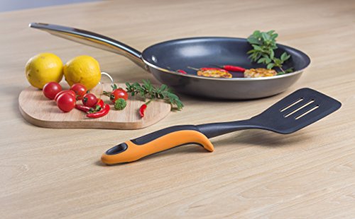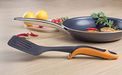 BPA Free Nylon Material & High Heat-Resistant: This slotted spatula turner is made of durable nylon, with FDA approved, safely use on enamel, Teflon coated, glass, Pyrex and even non-stick cookware. Highly heat resistant up to 210C/410F