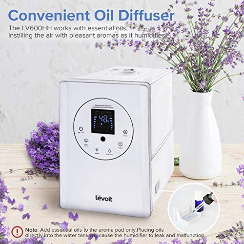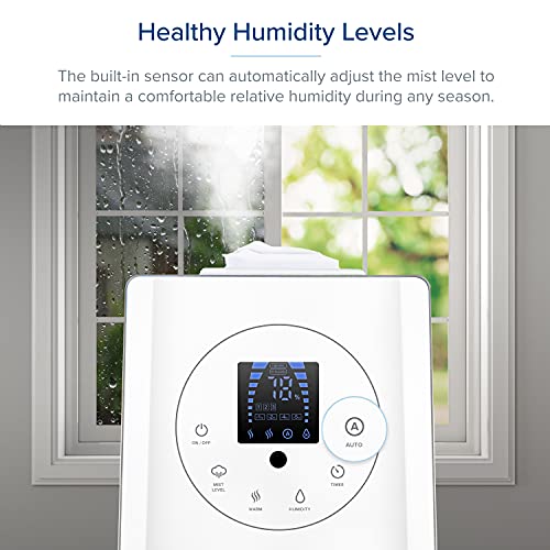 Huge Capacity: Large 1.5 Gallon/6L capacity allows for 36 hours of continuous use in Mist Level 1; With a super high mist output of up to 500ml/hr, can easily handle a bedroom, living room, or office