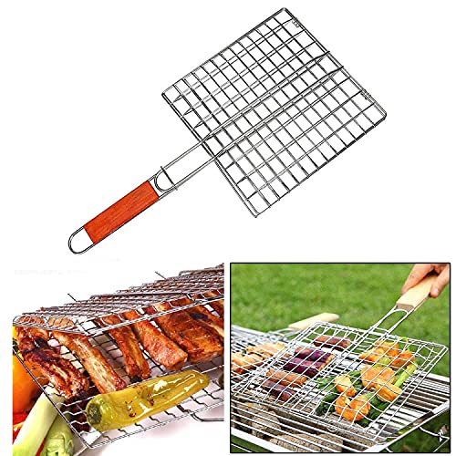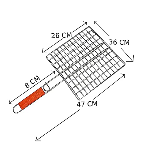 limbjal Stainless Steel Grill Pan with Wooden Handle Barbecue Roti Roast Grill Papad Roaster Chapati Toast and Paneer Tandoori Grill Stand (Big,Silver)