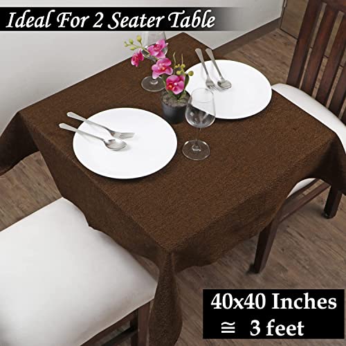 Linen Basics Poly Jute 2 Seater Dining Table Cover Cloth 40X40 Inches, (Copper-Brown)