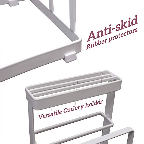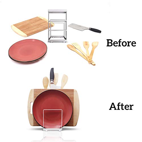 UNIQUE DESIGN – The chopping board holder measures (L-13,B-14,H-21cm) with unique design with a smooth surface which gives a premium look to your kitchen. The cutlery stand has a small footprint and takes up minimal space on your kitchen counter top, cupboard or even under sink, perfect for apartments and dorm rooms.