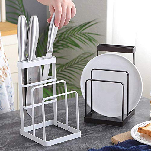 MULTIPLE STORAGE – Neatly organizes cutting board, kitchen knife, fruit knife, scissor, bake ware, pot lid, platter, dish, pan, tray and more. The kitchen organizer has 3 different slots for knives such as kitchen knives and fruit knives etc.