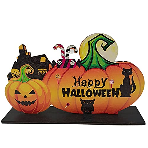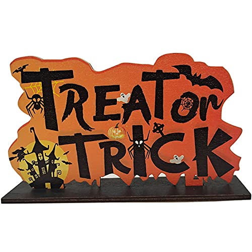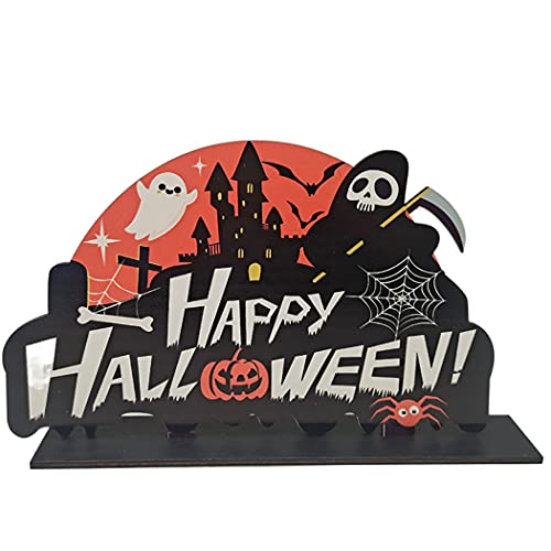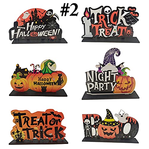Lnrueg Halloween Signs Wooden Decorative 6PCS Table Party Favors Office Wall Classroom Indoor Accessories Supplies Wood Tabletop Ornaments Hanging Decorations Party Favors Hanging Door Signs