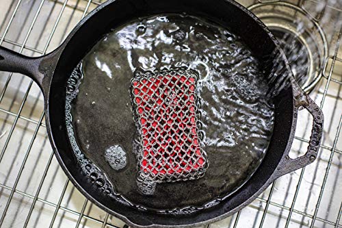 Designed to clean Lodge Cast Iron and Carbon Steel cookware. Durable stainless steel chainmail preserves natural cast iron seasoning while safely removing stubborn buildup.