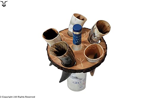 Loop Viking Vibes Viking Drinking Shot Glasses Set of 5 – Genuine Handcrafted Viking Horns – Original Horn Mug (with Wooden Stand)