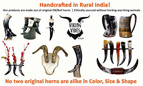 In Greek mythology, it was believed that God Dionysus held the drinking horn to be sacred. It is a handcrafted product made out of OX/Bull horns (without hurting any living animals) and polished to achieve the desired finish. No two horns are alike. Using drinking horns from Viking Vibes for your Viking-themed party is a perfect fit, you can level it up by replacing your usual glasses or cups. Benefits- Reusable, plastic-free. Dual-purpose- can be used as a drinking horn and as a souvenir/collectible.