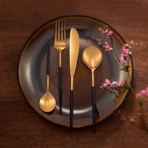 Luxury KITCHENWARE 4 Pieces Classic Design Royal Flatware Cutlery Set of 4 , Polished Classique (Contains Desert: 1 Knife, 1 Tea Table Spoons, 1 Forks, 1 Soup Spoons) Black, Gold