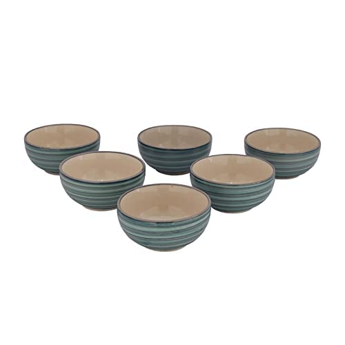 Lyallpur Stores Ceramic Bowl (Pack of 6, Green Color) Line Design Embossed Halwa Serving Bowls for Gifting & Serving Biscuit, Namkeen, Snacks Etc. Medium Size, Kheer Serving Katori Bowl Set