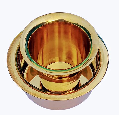 Madhura eStores Brass Coffee Dabara Set/Traditional Kumbakonam Dabara Set/Degree Tumbler and Dabara/Serving Drinkware/Tea Dabara Set/Peetal ka Dabara Set (Pack of 1)