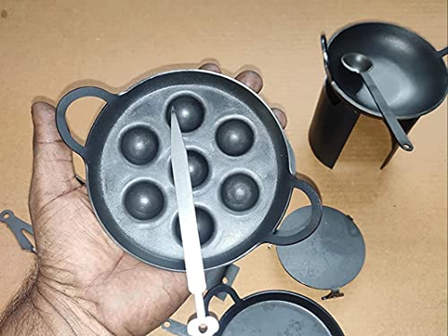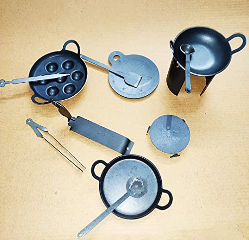Madurai Famous Traditional Iron Made Miniature Kitchen / COOKWARE Set for Kids to Play, Toys Set – Set of 12 ( Iron, 12 Pcs, Black )