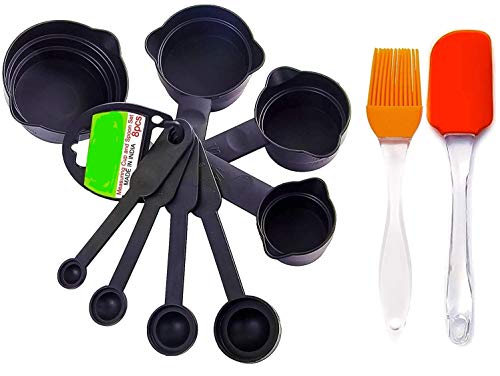 - MAFAHH Package Contains:- Round, Heart, and Square Shape Cake Mould With 6 Slot Muffin Tray and Bread Loaf Pan with 8 Pcs Measuring Cups and Spoons, Brush Spatula Set with Cake Knife | Material: Teflon Coated Metal | Color: Black | Easy to clean.