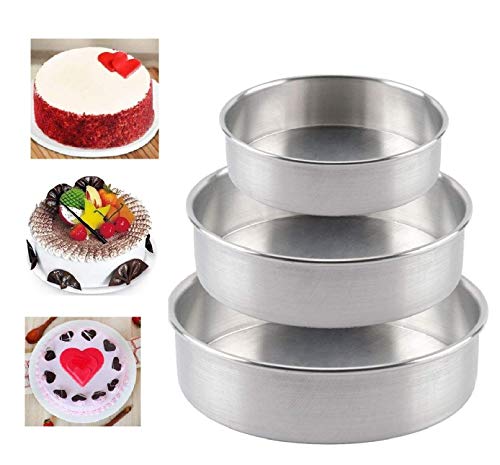 MAFAHH Package Included: Set of 3 Aluminium Round Shape Cake Mould | Material: Aluminium | Shape : Heart | Size : 5 inch, 6 inch, 7 inch, 8 inch. | Color: Silver | Easy to Clean.