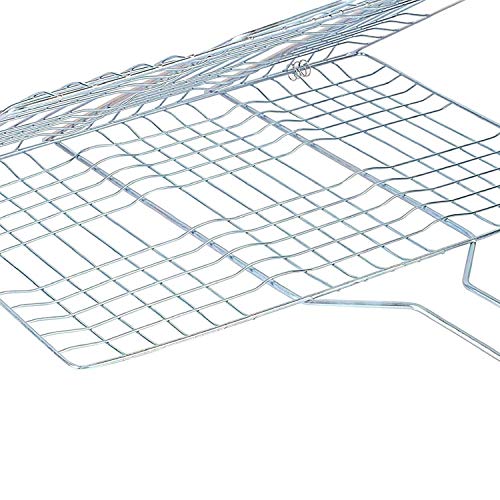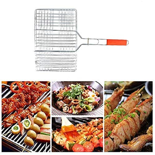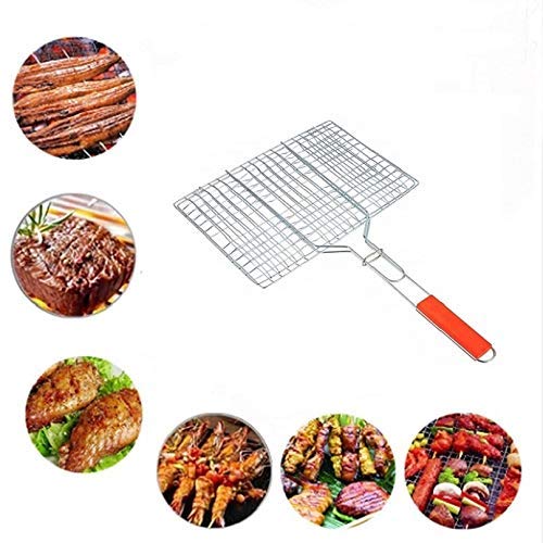 This BBQ Grill Grate combines two grates for more grill area for ribs, steaks, kebabs, and more mouthwatering barbeque meals. The grill grates fold for space-saving storage and easy carry. Chromium Plated Wire meshes with non-stick Teflon coating ensures the rust-free and long life of this BBQ Grill GratesTaking your grilling skill to the next level with this easy flip Grill Grate Foldable Basket Roast and Wooden Holder. The extended heat-resistant wood handle provides grip, which will keep you safe from the heat generated by the grill. Creative lockable grate – Lockable grill grate locks foods in place and would not loosen when locked enable easy flipping of grilled foods like burger hamburger vegetable fish seafood chicken meat and any other fry items for camping outdoors picnic kitchen hotel family party. Extra-large non-stick coating ensures easy food release and clean-up Great to grill – fish, seafood, vegetable, meat, pork chop, chicken, chicken wings, chicken neck, chicken, chicken head, chicken racks, etc. Can clip burgers, sausages, etc., can also be grilled many items, easy to flip, food is not easy to be burned, strong and durable, non-toxic harmless. It is small and easy to carry.