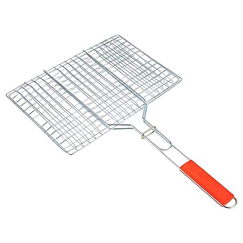 This BBQ Grill Grate combines two grates for more grill area for ribs, steaks, kebabs, and more mouthwatering barbeque meals. The grill grates fold for space-saving storage and easy carry. Chromium Plated Wire meshes with non-stick Teflon coating ensures the rust-free and long life of this BBQ Grill GratesTaking your grilling skill to the next level with this easy flip Grill Grate Foldable Basket Roast and Wooden Holder. The extended heat-resistant wood handle provides grip, which will keep you safe from the heat generated by the grill. Creative lockable grate – Lockable grill grate locks foods in place and would not loosen when locked enable easy flipping of grilled foods like burger hamburger vegetable fish seafood chicken meat and any other fry items for camping outdoors picnic kitchen hotel family party. Extra-large non-stick coating ensures easy food release and clean-up Great to grill – fish, seafood, vegetable, meat, pork chop, chicken, chicken wings, chicken neck, chicken, chicken head, chicken racks, etc. Can clip burgers, sausages, etc., can also be grilled many items, easy to flip, food is not easy to be burned, strong and durable, non-toxic harmless. It is small and easy to carry.