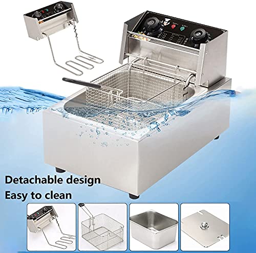 【Good quality】:The detachable thick fuel tank is convenient for quick and thorough cleaning. Made of stainless steel, durable and lasts for long time use.Single tank Comes with FREE stainless steel fryer basket and plastic handles,one year warranty Equipped with multiple safety features, and designed to be easily broken down daily for cleaning, safe and hygienic,Easy to operate, easy clean ,and high performance,excellent efficiency