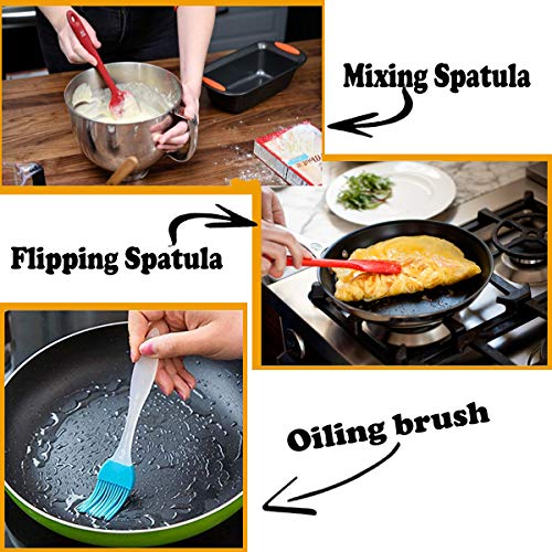 MAKS Bakeware Combo Set: 2 in 1 Rectangle Cake Pan/Bread Loaf, Measuring Spoon, Silicone Spatula and Oiling Brush
