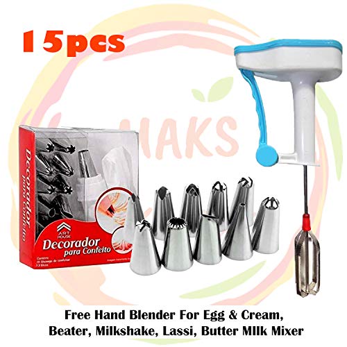 Package Include – 1 Mixer blender or whisker with 12 nozzles set and reusable icing piping bag. Great for making and decorating cakes, desserts, cookies, cupcakes, muffins and many more.