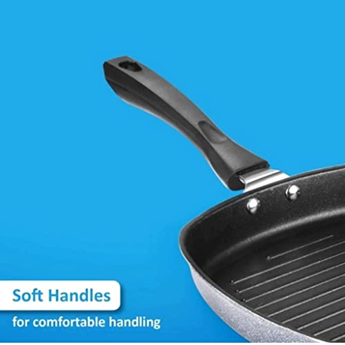 This Non-Stick grill pan is made up high quality Aluminium material. This helps you to cooked grilled items such as kababs, cheese, vegetables sanwiches and more within minutes. Non-stick coating, this pan can greatly reduce your oil consumption , resulting in healthier meals for you and your family. An ergonomic handle that stays cool while being used on the stove top, you can easily handle this pan without worrying about burning your hands. This square shape grill pan is dishwasher safe. Dimensions- Weight – 454 gm Height – 4 Cm Length – 24.5 Cm Width – 24.5 Cm.