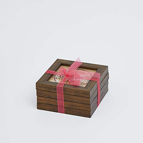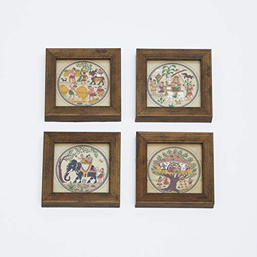 Mati Ke Laal Traditional Design Framed Coasters Set of 4 – Coasters for Coffee Table Dining Table Tea Coaster Set for Office Drink Coasters Bar Accessories